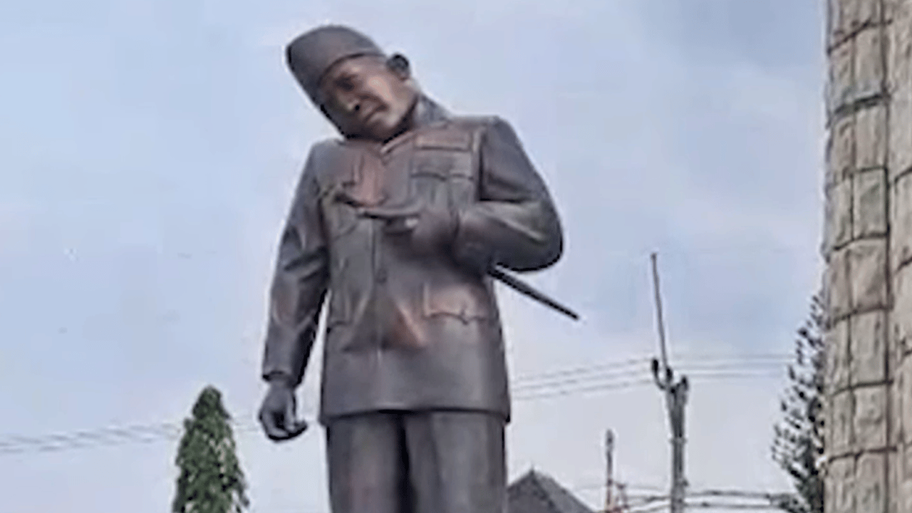 A statue of Indonesia’s first president, Soekarno, located at the town square in Indramayu, West Java, was found leaning with its neck visibly damaged after a strong gust of wind caused an event tent to collapse onto it. The incident occurred following preparations for an inauguration ceremony on November 12, when the falling tent struck the statue’s head and neck. Officials confirmed that the Soekarno statue, made of copper, requires repair by its original sculptor using heavy equipment, prompting authorities to temporarily take it down. Although the adjacent Hatta statue remains intact, it will also be removed for safety while restoration work is carried out.